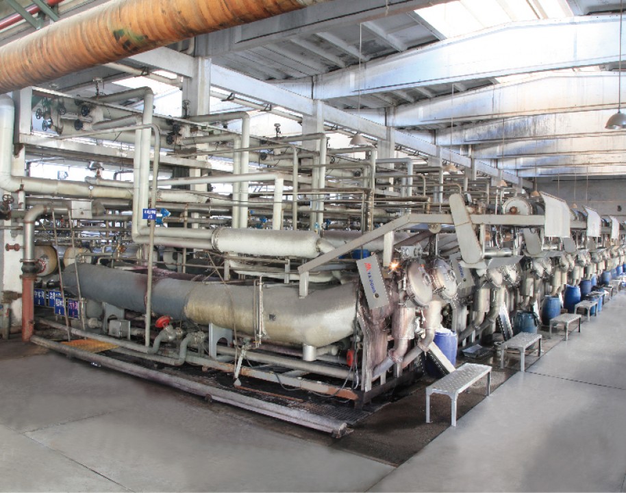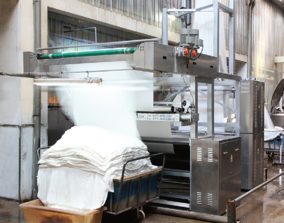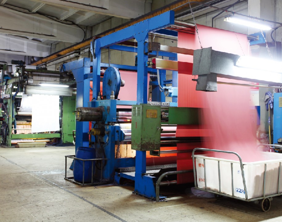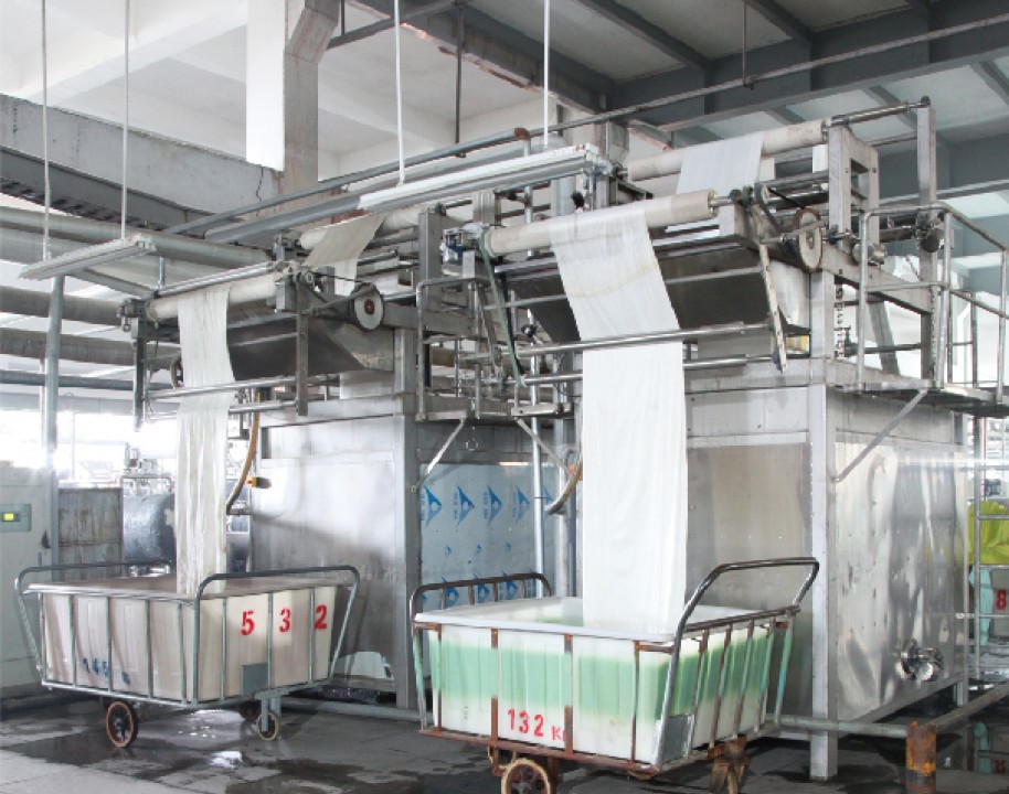 It mainly prints and processes all kinds of printing and dyeing products of cotton, t / R, t / C and cotton fur series. There are 6 sets of Korean imported setting machines, 3 long car pad dyeing lines, and supporting front steam bleaching mercerization